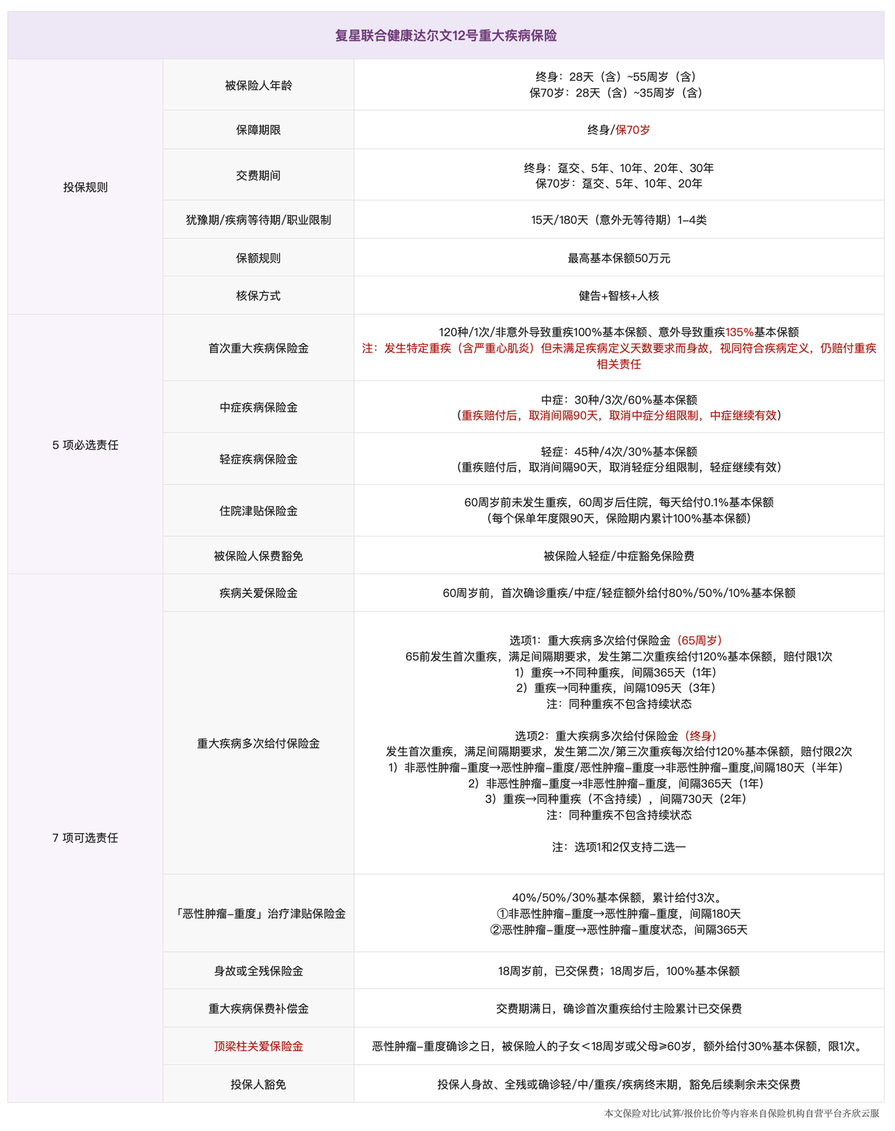 达尔文 12 号是目前市场上口碑非常好的重疾险产品之一,保障责任全面,性价比高,很多人把它列为首选。详细测评见 👉 《达尔文 12 号测评:当重疾更有人情味》。
