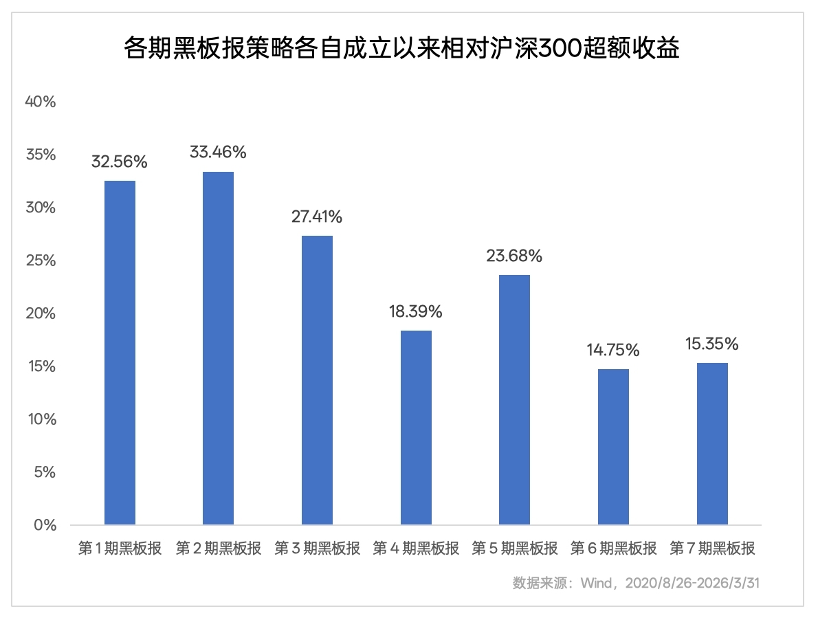不止第 1 期黑板报,长期来看,各期黑板报策略从各自成立以来,相对于沪深300指数,均有着一定的超额收益表现。