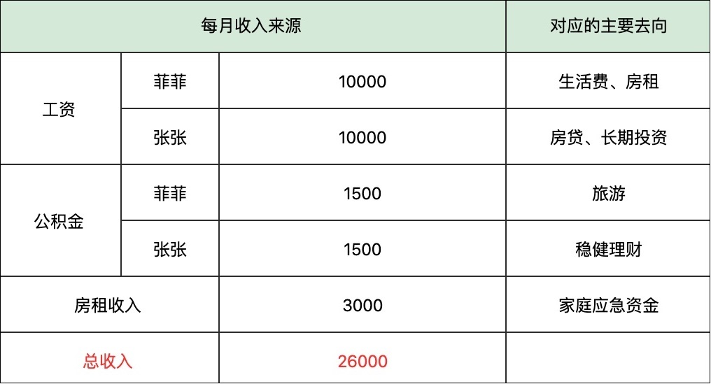我会先把我们家的收入来源做一个整理,并且确定好每笔收入的流向。比如,我的公积金主要流向旅游基金,我先生的公积金主要流向稳健理财。这样,在收到相应钱款的时候,按照计划划分到对应的账户里就可以了。