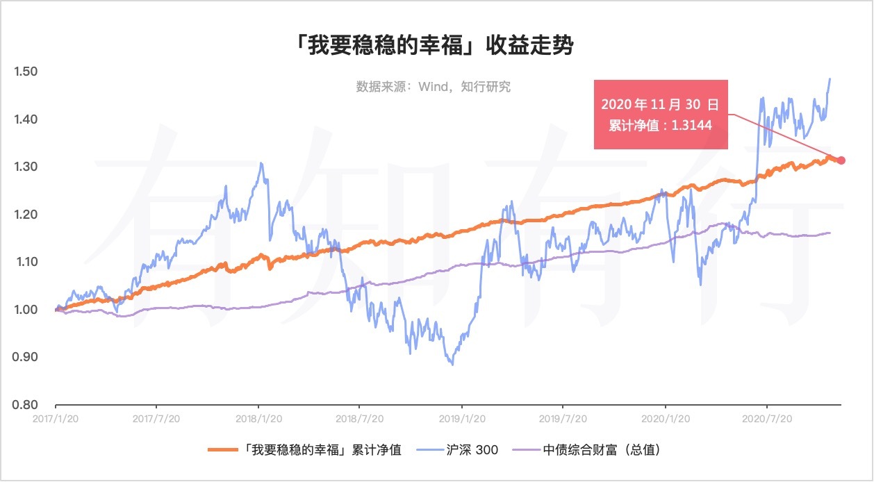 信用债违约的冲击逐渐过去,加上央行不断放水来释放暖意,债市迎来反弹。但上周股市分化很严重,除了一些大盘股大涨之外,其余大部分股票表现不佳,这导致偏股型基金多数下跌。「我要稳稳的幸福」受到拖累,小幅下跌 0.11%。