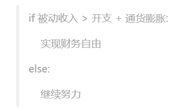大部分人只要通过投资产生的「睡后收入」能超过自己的日常开支,或者进一步超过工作收入就可以达到财务自由了。