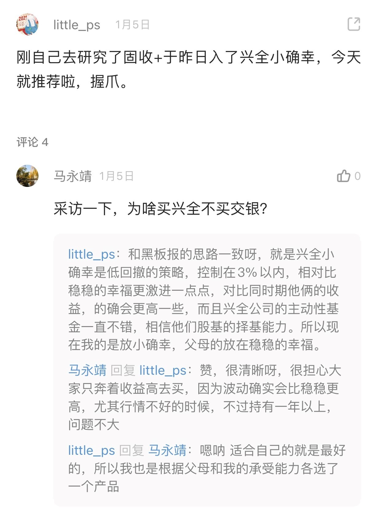 上期黑板报给大家介绍了另一款稳健理财产品——兴全低波动小确幸,通过留言能够感受到,大家对这个产品还是很感兴趣的。有的人去搜索研究了,有的人已经买入了。