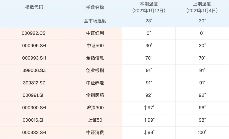 市场指数,尤其是大家熟悉的上证指数、深证成指、创业板指都上涨了,你们指数列表里面的指数大多也是上涨的,为什么股市温度反而下降呢?