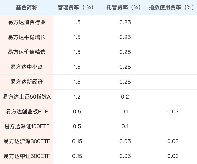 成份股是指数编制公司或机构通过规则筛选而出的,指数基金配置指数成份股就可以了,不需要再动脑考虑应该投资于什么和投资多少的问题,这就极大的解放了基金管理团队的脑力负担。所以,指数基金的管理费率相比主动管理类型的基金就低很多,托管费也低一些。有的指数基金,特别是ETF基金会多一个标的指数许可使用费,费率很低。
