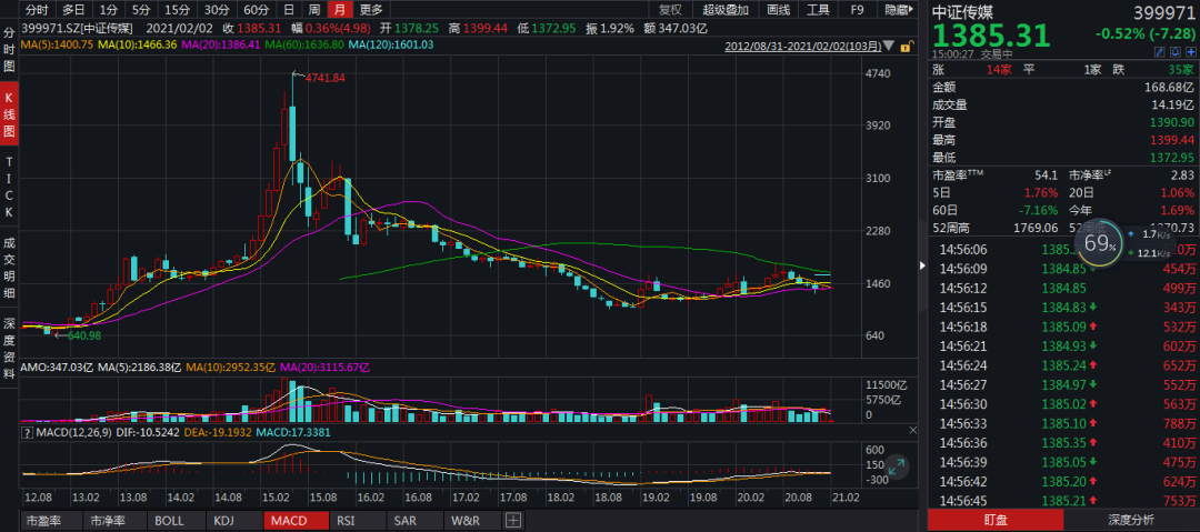 比如,中证传媒指数因为行业整体的恶化可以表现为五六年的持续性萎靡不振……