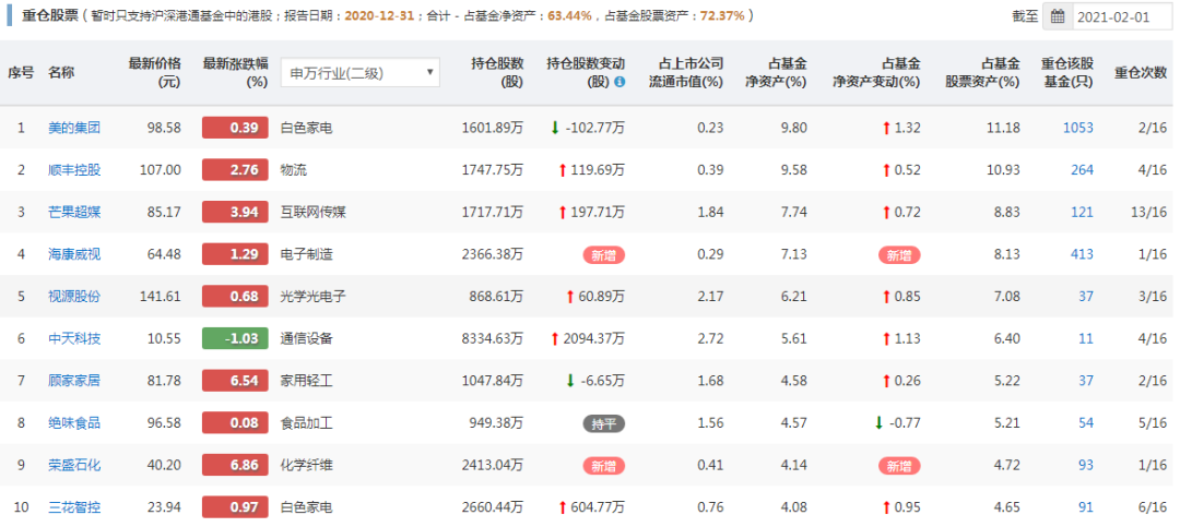 多行业均衡配置的主动型基金,往往只选择某个行业里基本面最好的一两个公司进行布局。比如物流行业选择顺丰控股而不用把圆通、申通、韵达选入;比如建材行业选择海螺水泥、东方雨虹而不用把小水泥公司选入;比如金融地产行业选择招行、宁波、兴业、平安、中信、东财、保利、万科而不用选择竞争力、股东回报、成长潜力较弱的公司。
