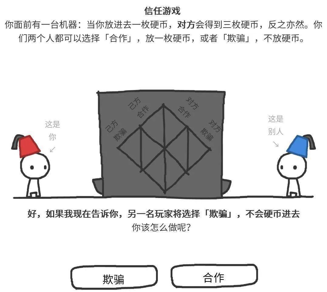 在博弈论中,有很多学者做过大量关于人际交往模型的研究。通过计算机模拟最后得出的结论是,「一报还一报」是一个最佳模型,长期来看收益最稳定。