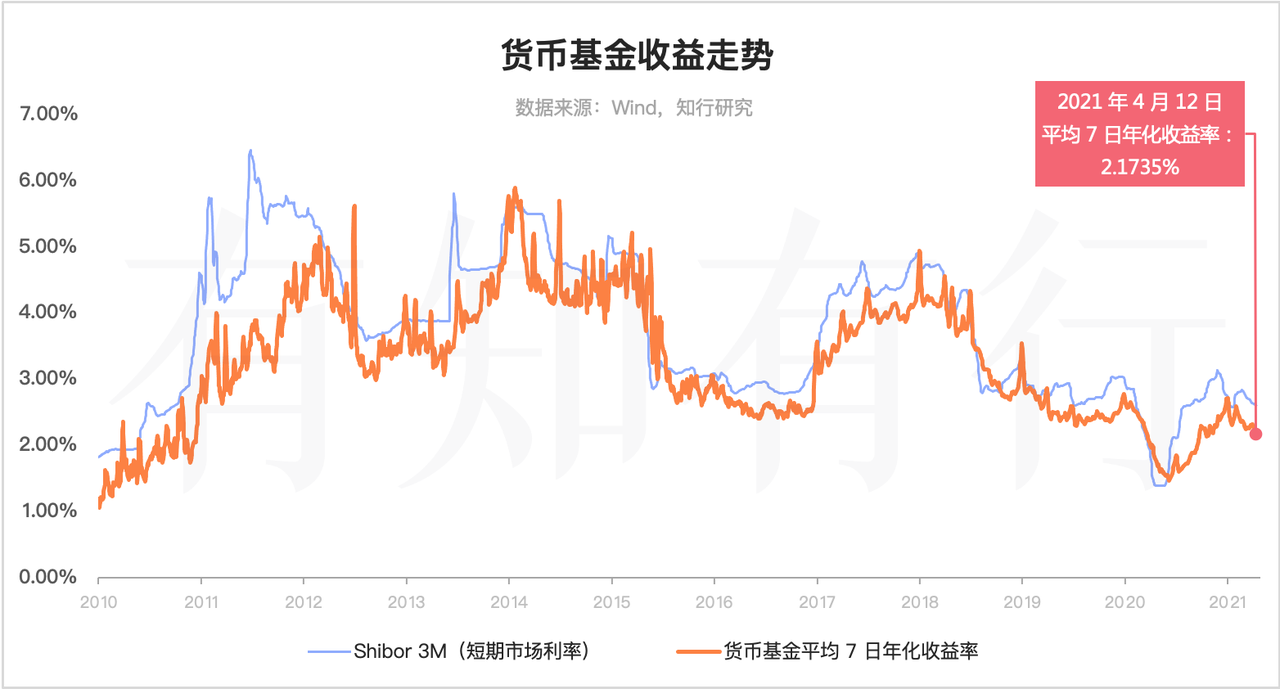 月底资金面紧的时点过去以后,短期市场利率正常回落。上周,短期市场利率小幅下行,带动货币基金及银行活期理财收益率小幅下跌。截至 4 月 12 日,货币基金平均 7 日年化收益率为 2.1735%;银行活期理财年化收益率约 3.1%。