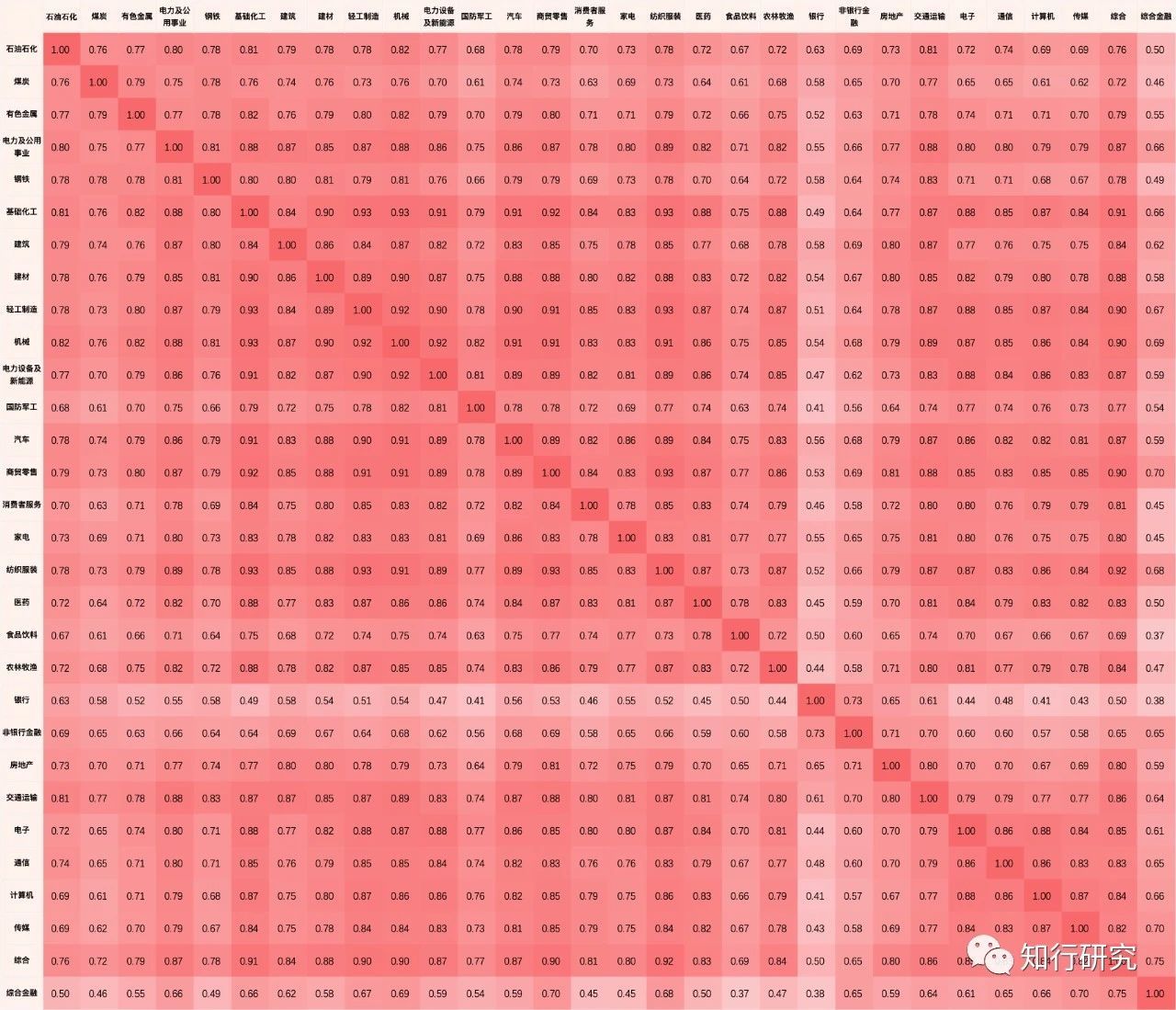 比如很多人会配置许多A股行业指数基金,纠结于这些行业指数之间的相关性系数高低。