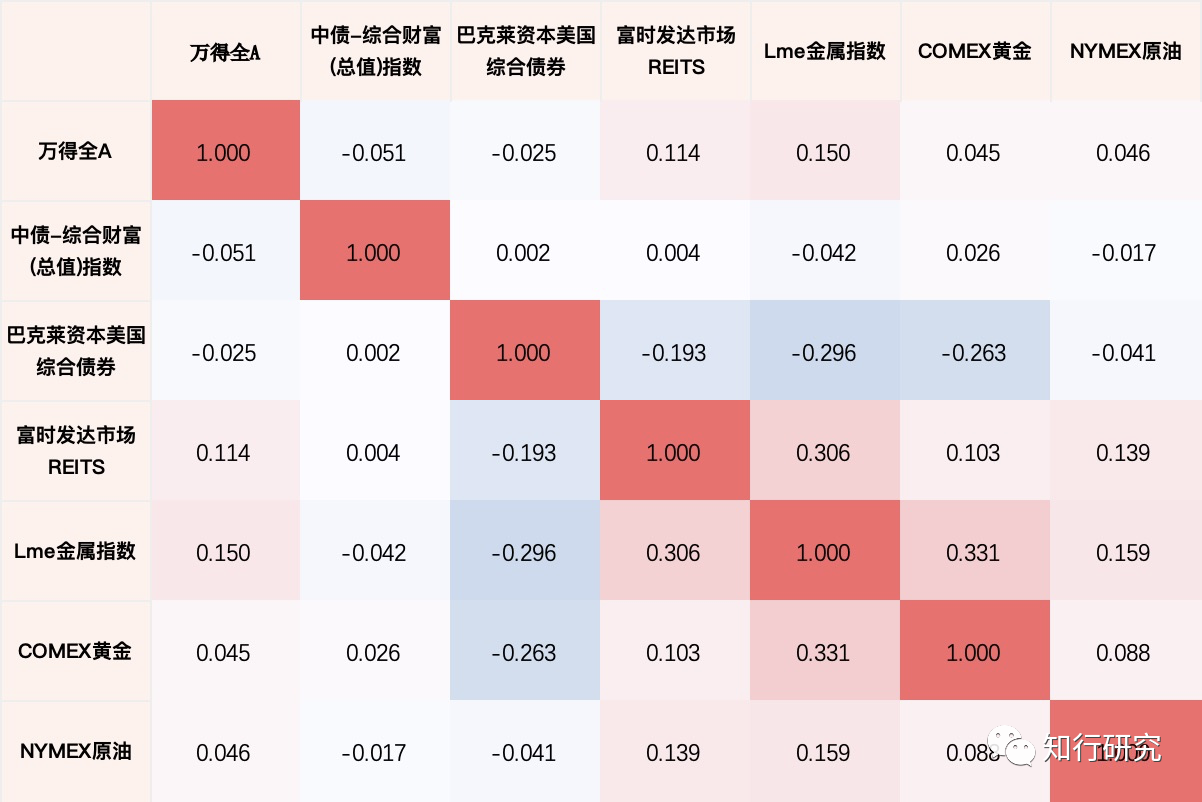 到这里,我们能总结出一个常见资产间的相关性高低规律: