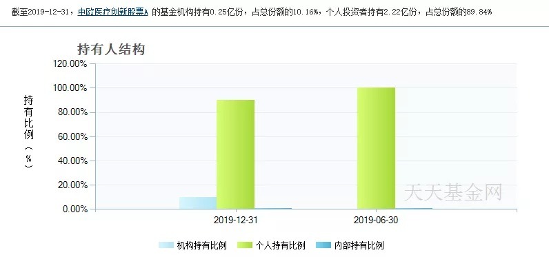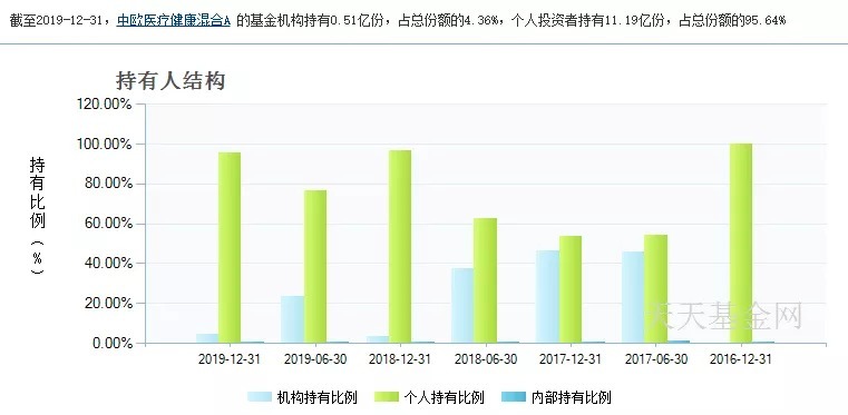 在基金资料页面我们可以看到持有人结构比例,一般有个人和机构两大类,机构持有者指的是企业、社会团体、事业法人等组织,个人的话就是散户。