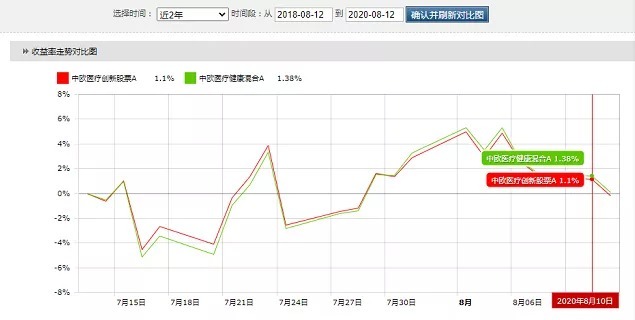 健康这只机构持有比例是 4.36%,创新的机构持有比例是 10.16%,比较了两只历史业绩走势,不管是 1 年还是 2 年,机构持有人多的那只略胜一筹,在回撤上,也更优于另一只。