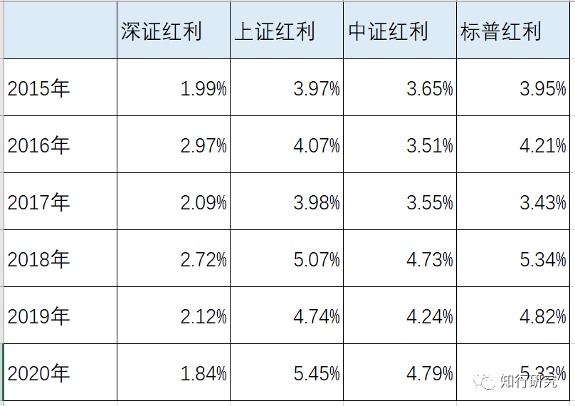 从名字就能看出,上证红利是从沪市中选择,深证红利是深市中进行选择。中证红利和标普红利是从全市场进行选择。