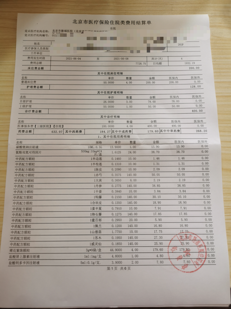 6. 医疗费用汇总清单:出院结算完费用后,医院通常会给打印。