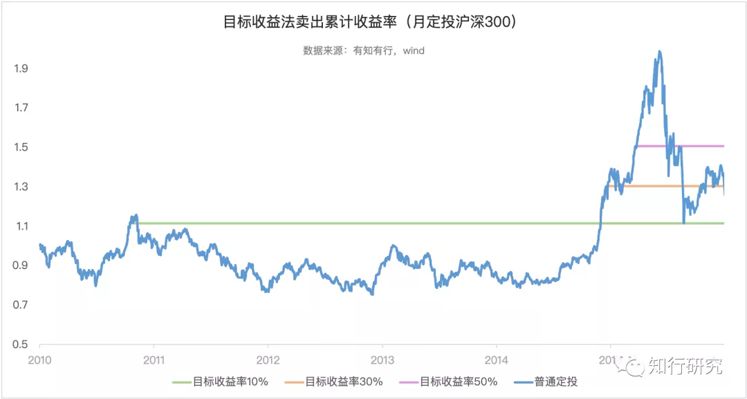顾名思义,目标收益率法是当累计收益率或者年化收益率达到某个特定值后,卖出全部资产,结束定投的卖出方法。它目的是将收益落袋为安。
