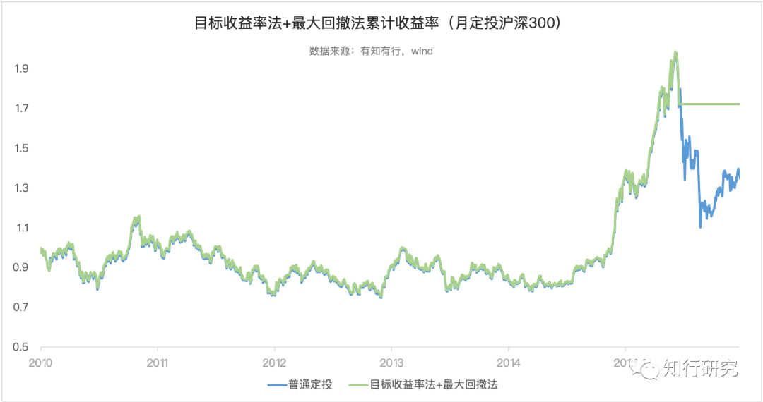 最大回撤法会设置一个可容忍的最大回撤幅度,当目标指数下跌超过该幅度,就卖出所有资产,结束定投。