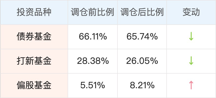 另外,昨天「我要稳稳的幸福」调仓了,具体调整比例如下: