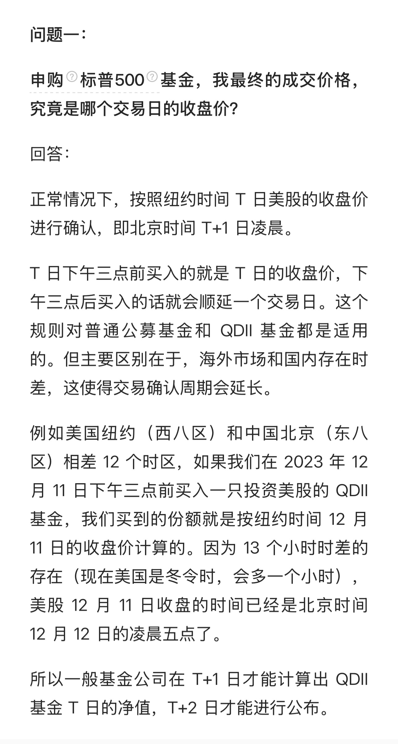 我在今天申购标普500/纳斯达克100基金,最终的成交价格,究竟是哪个交易日的收盘价呢?