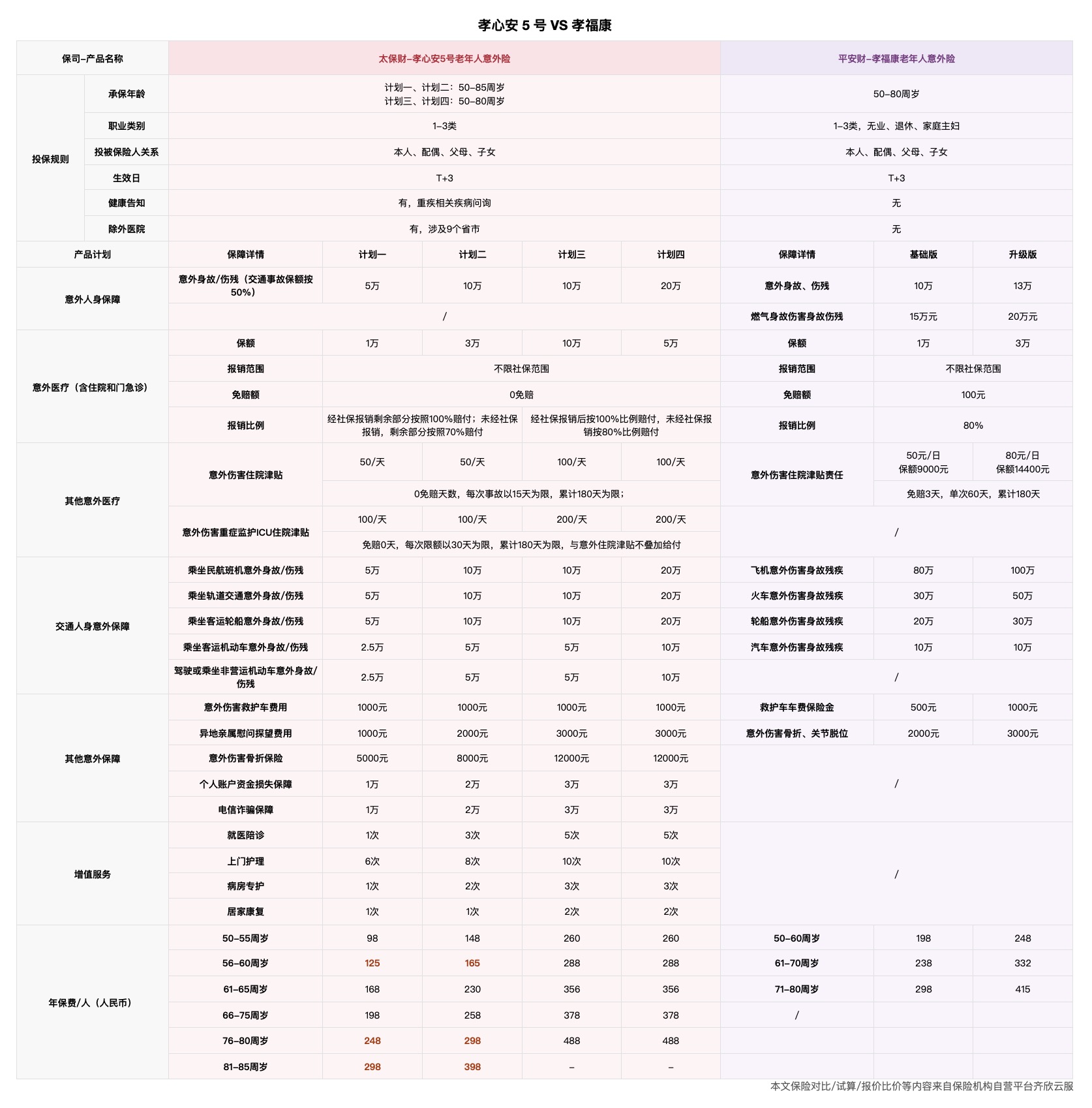 在每月更新的「家庭保险配置方案」中,我们推荐 50 岁以上的长辈配置孝心安 5 号。