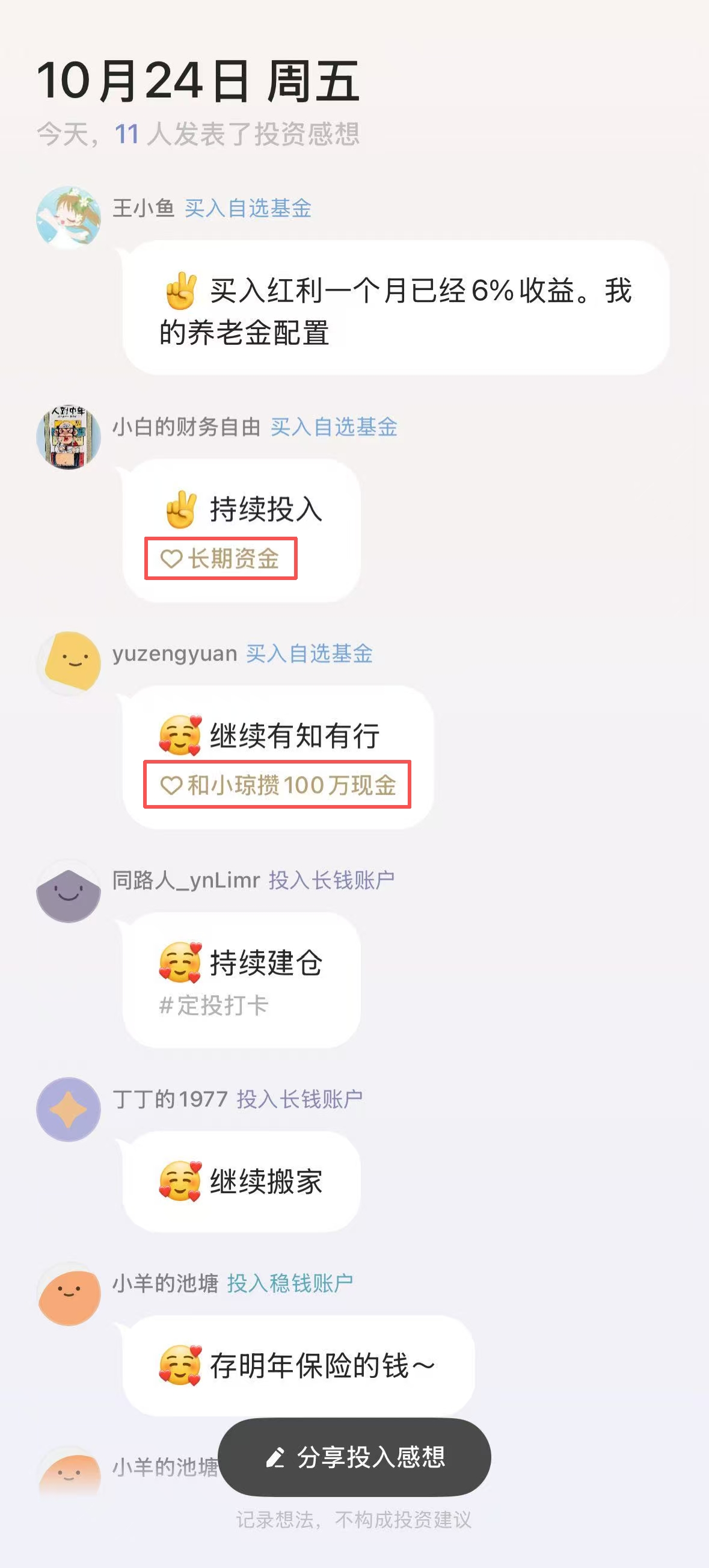 有知有行 2.0 版本后,首页的交易大厅有了一些小小的变化,在完成一笔基金交易之后,分享投入感想时,可以勾选上自己的心理账户名。