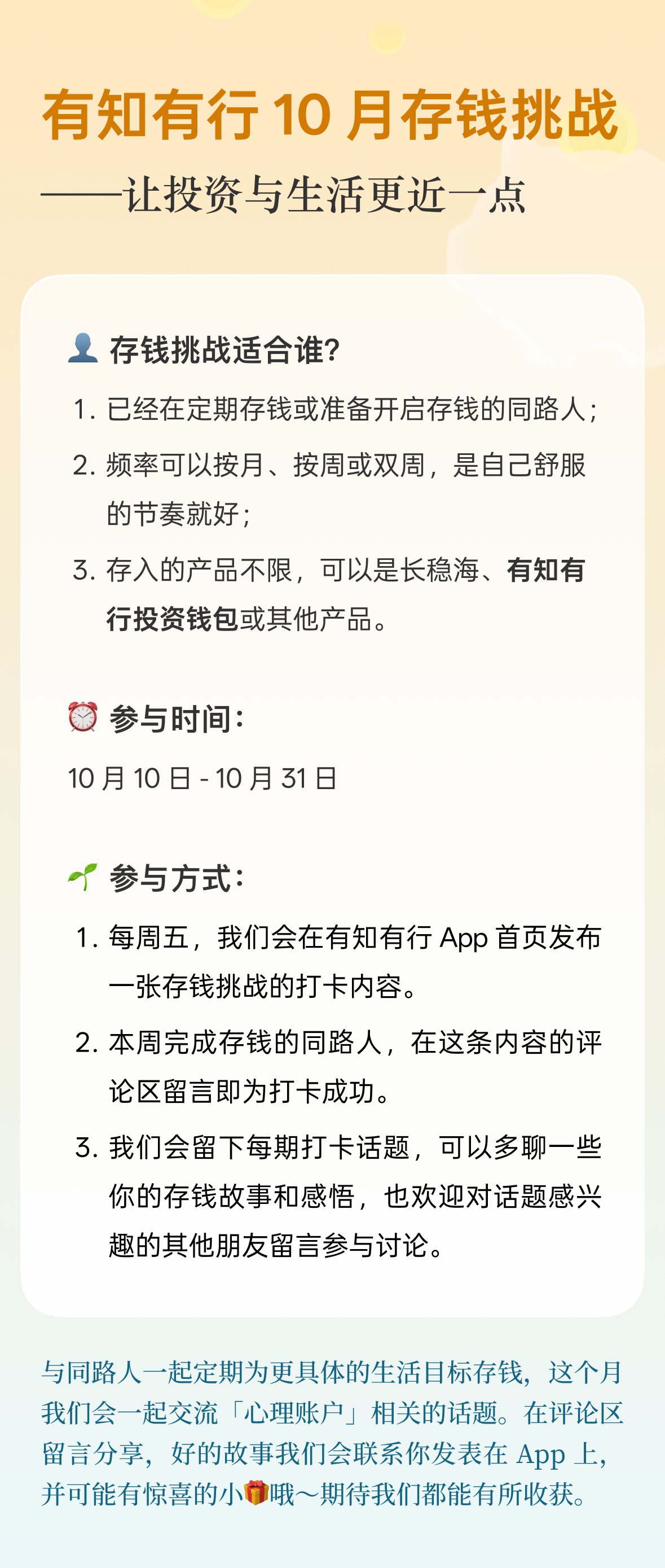 10 月存钱挑战继续,这一期的打卡话题是:你给自己的心理账户取名了吗?有什么可以展开讲讲的故事?