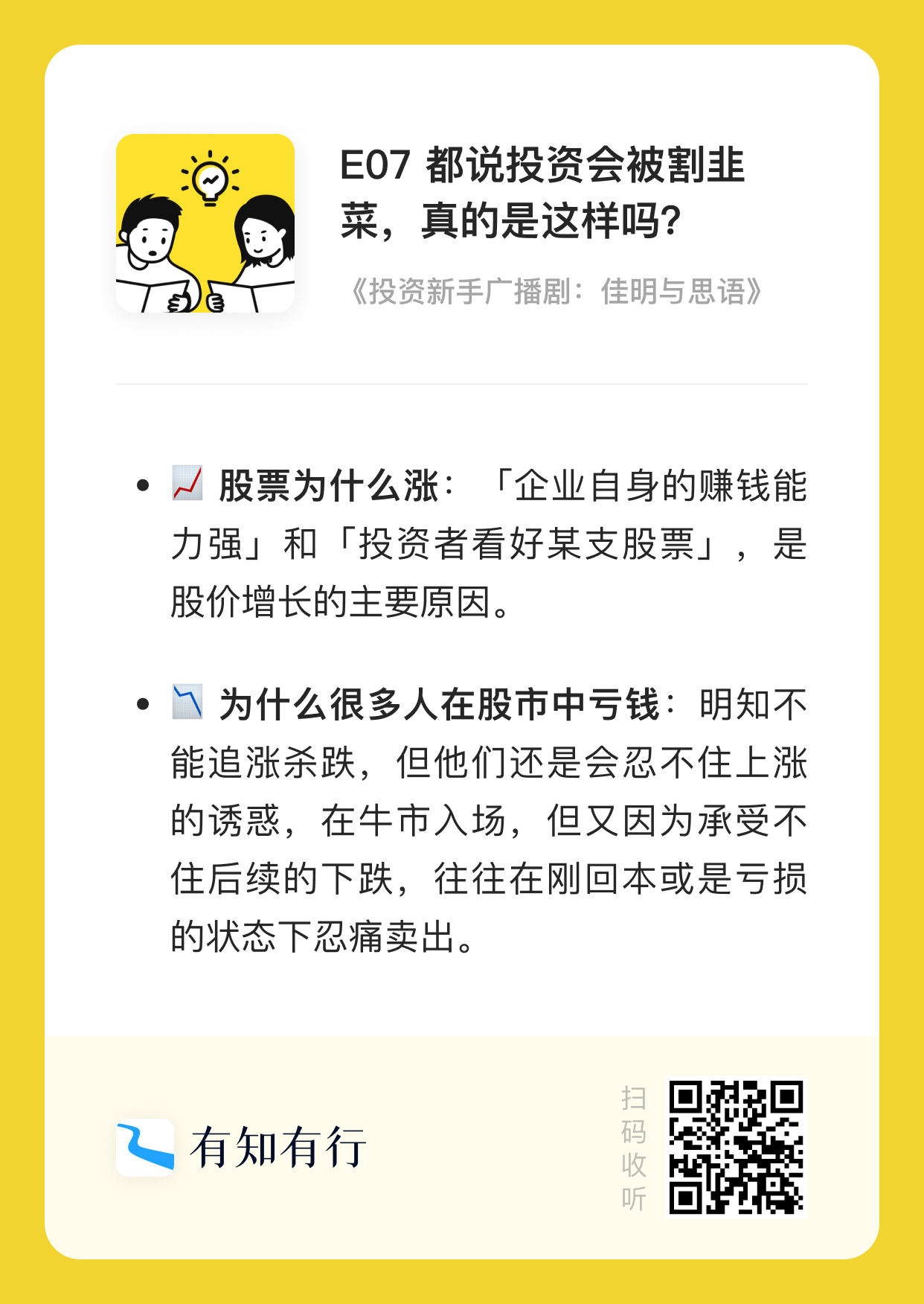 第七集来啦!今天陪大家唠嗑的又是我😝刚刚踏上投资之路的佳明在本集更进了一步,开始观察和思考市场变化,避免自己成为一位绿油油的韭菜🍃你对投资避坑这个话题有什么心得吗?欢迎多多留言分享~ 今天的北京特别冷,据说还下雪了(我没看到)❄️希望各地的大家都能拥抱好天气!明后天是我们广播剧的最后两集啦!更多精彩不要错过哦~