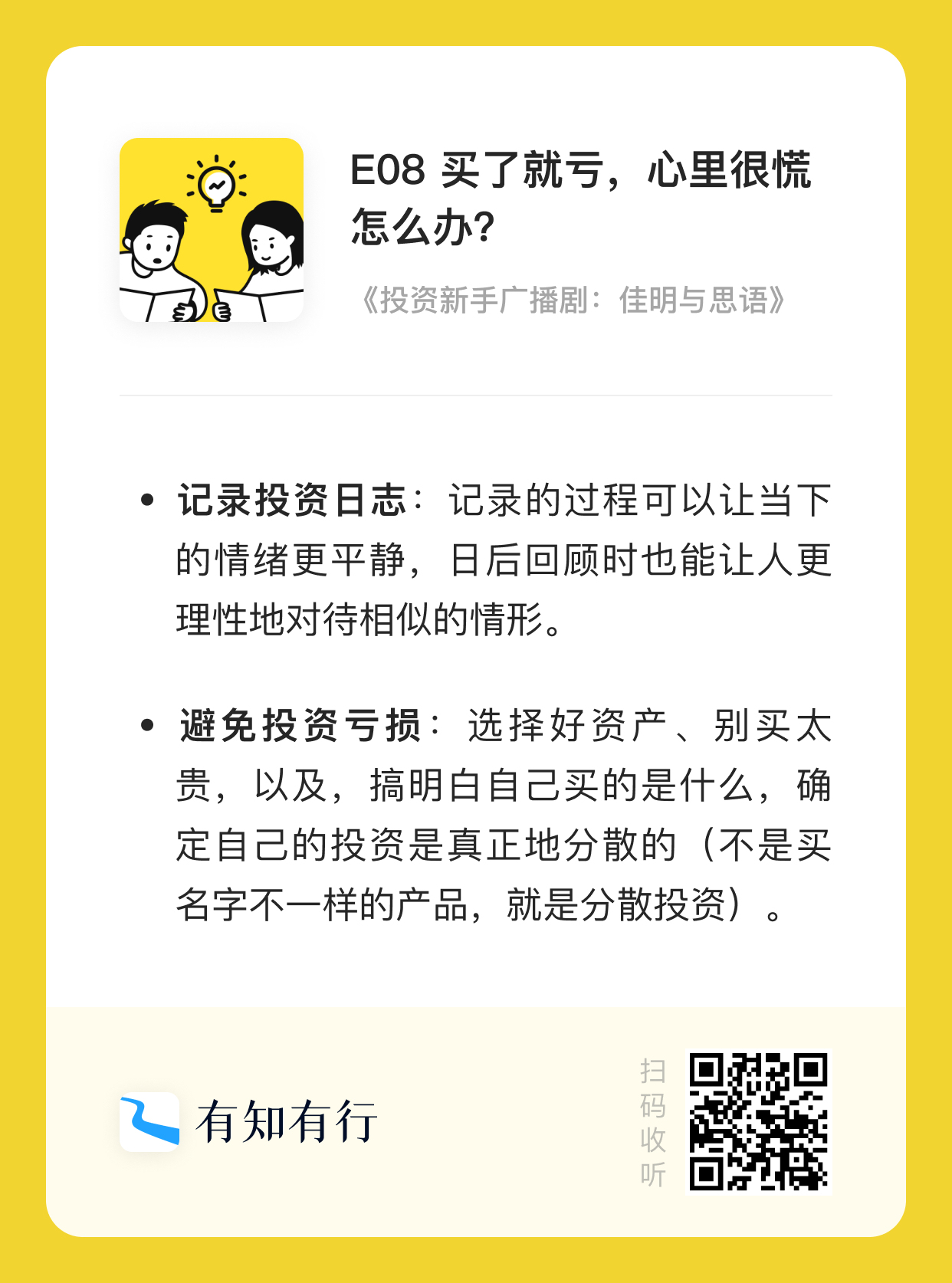 思语:当然有。首先,记录的过程能够让我们平静下来;同时呢,回顾投资日志的时候,我也能看到自己当时的情绪波动。未来出现类似情景时,就能更理性地对待。