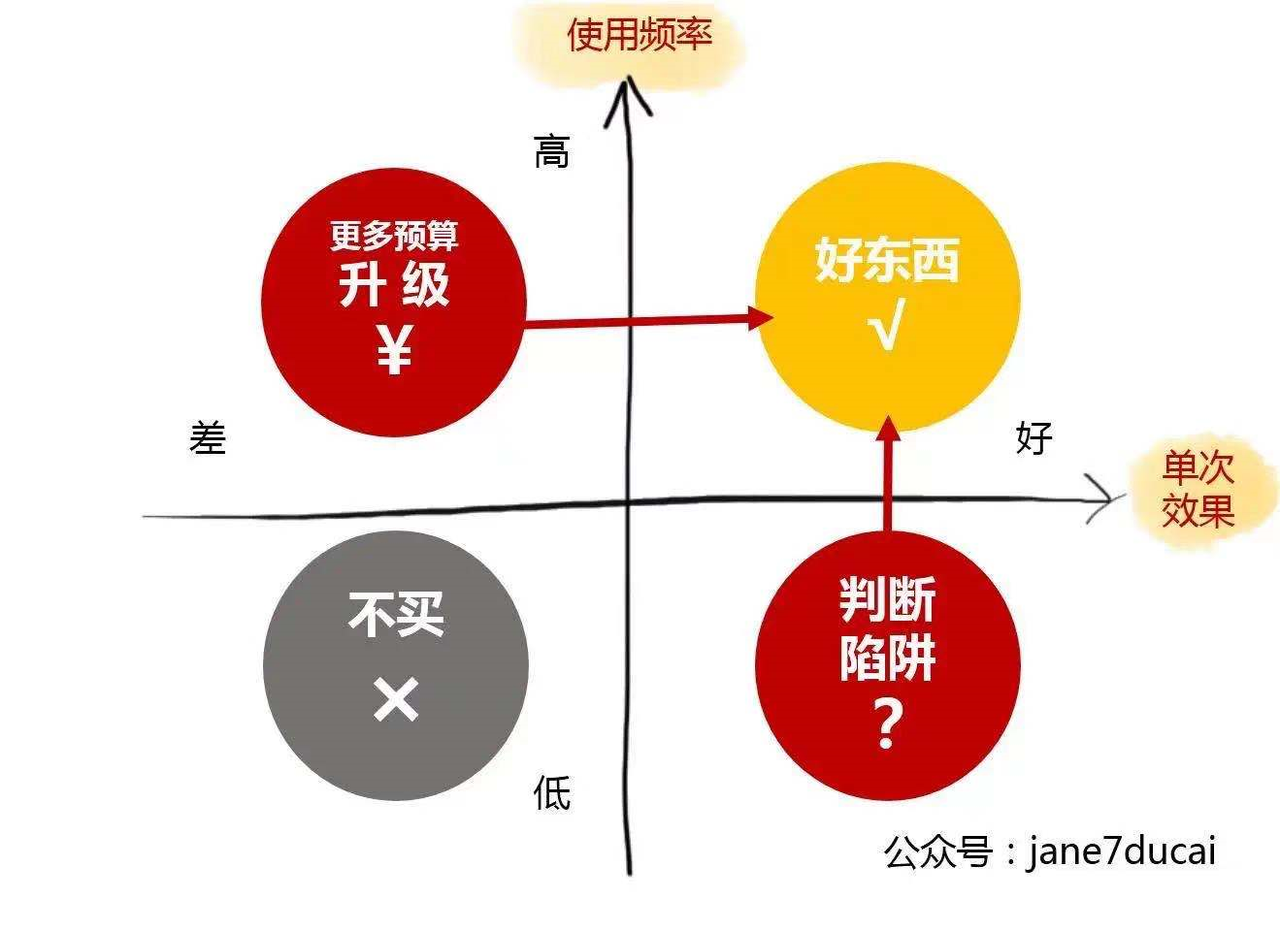很喜欢简七七的「好东西公式」和四象限图,让说不清道不明的购物意图,瞬间变得清晰可辨啦,赞!