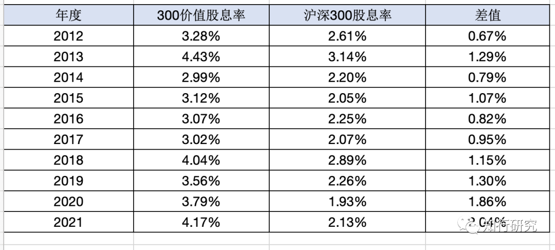 下图是300价值和沪深300股息率对比,300价值的平均股息率在 3.55%,沪深300的平均股息率在 2.35%。尤其是这两年,随着沪深300成长股的增加,两者的差距在逐渐扩大。