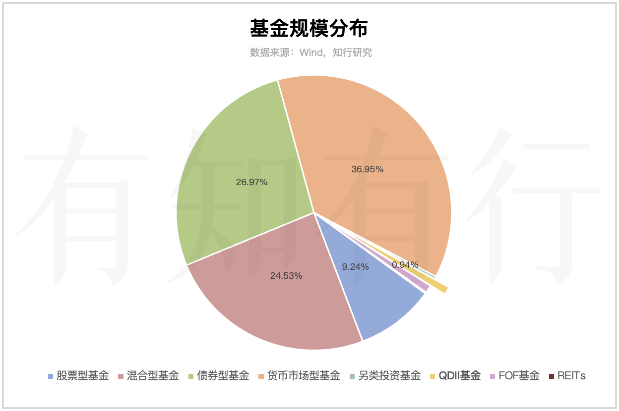 QDII 的规则确实要复杂一些,毕竟我们去投资了海外市场,要承担海外市场波动的风险,要承担国内基金公司和基金经理对海外投资不熟悉的风险,还要承担汇率风险。再加上 QDII 投资还有外汇额度的管控,因此从 2007 年发行第一批 QDII 到现在,QDII 的数量和规模在所有公募基金中的占比都非常小,如下图。