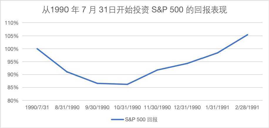 首先,我们来看美股市场。在过去 30 年里,对美国股市造成最大影响的冲突,是 1990 年代初的海湾战争。如果算上股息,美股市场下跌了约 15%。熟悉美国历史的你可能知道,当时还有许多其他的事情也造成了美股市场的下跌。在 20 世纪 90 年代初,美国经济疲软,日本的资产泡沫迅速消退,为了应对国防和医疗等社会公共开支的大幅上升,H.W.布什政府在 1990 年提高了几项税率。尽管如此,美股市场在接下来的一年里很快就恢复了。
