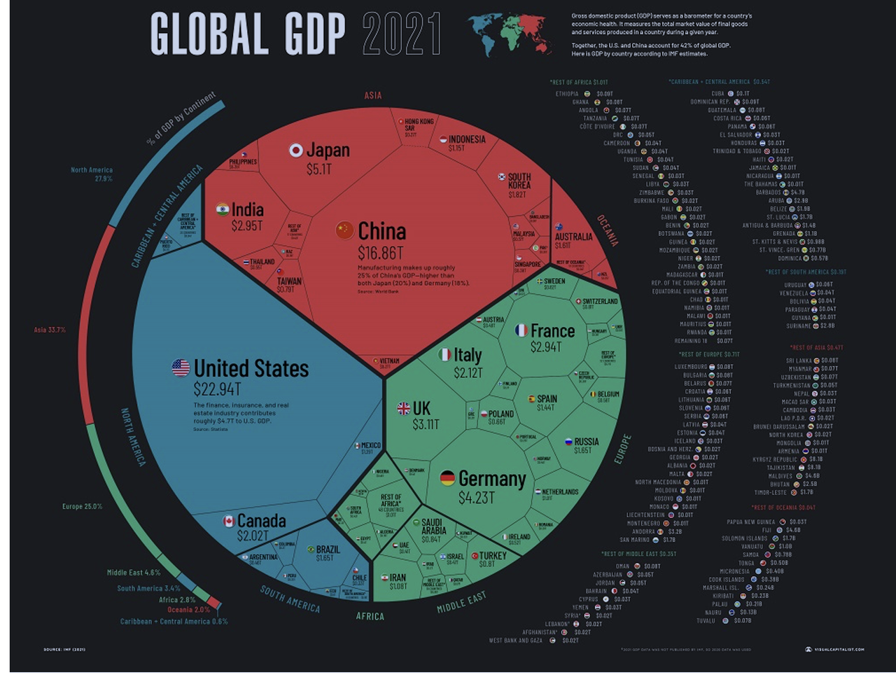 上图:2021 年世界各国GDP占全球经济占比|来源:stonenews