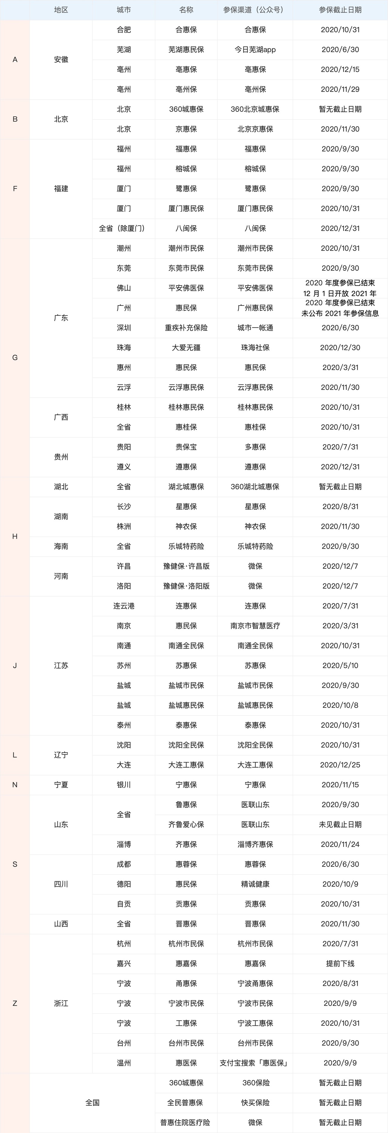 • 我做了一个简单的统计,把已经开通惠民保的城市做了个表格,大家可以作为参考。如果有不全的,欢迎在想法区进行补充。