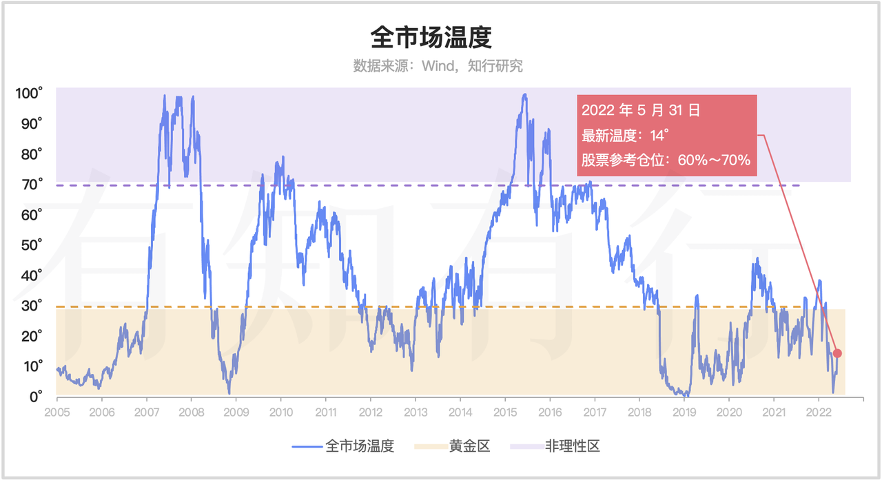 经过 5 月份的反弹,我们最新的全市场温度来到了 14°。具体指数方面,由于最近一周市场整体是上涨的,黑板报关注的指数温度都出现了上涨。