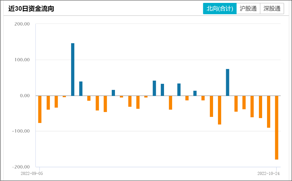 除此之外,近期外资的持续卖出,也对它们造成了很大的压力。下面这张图是最近 30 天北向资金的流入流出情况。