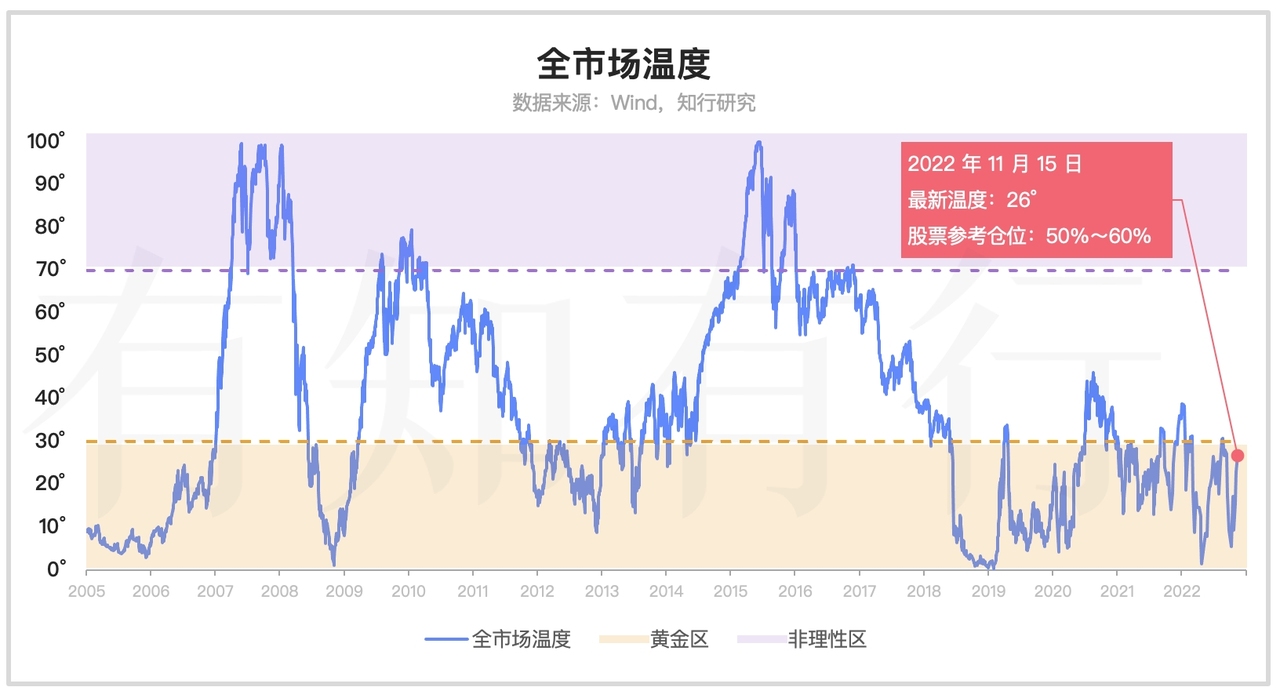 经过一周的变化,全市场温度涨到了 26°。具体指数温度,除了创业板指之外,其他指数温度都出现了上涨。而且,这里面所有指数的温度全部脱离 0°,这是很长时间以来,都没见到的场面。