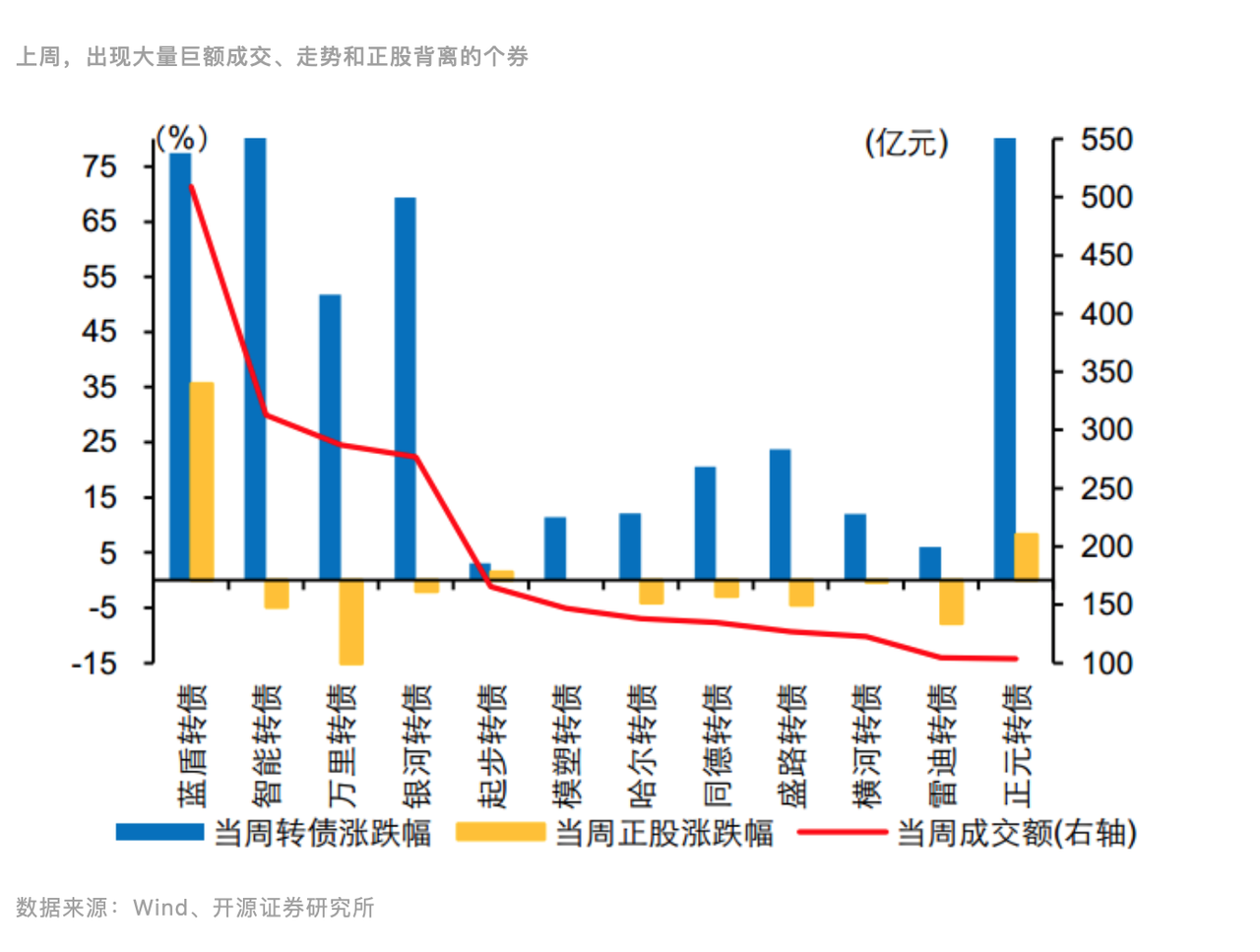 本周开始,可转债的调整幅度加大,炒作迹象依然很明显。10 月 27 日,行情分化,多只转债因涨幅触及上限,被临时停牌,还有一些转债跌逾 20% ,触发熔断。有人调侃说,可转债正在上演「冰与火之歌」。