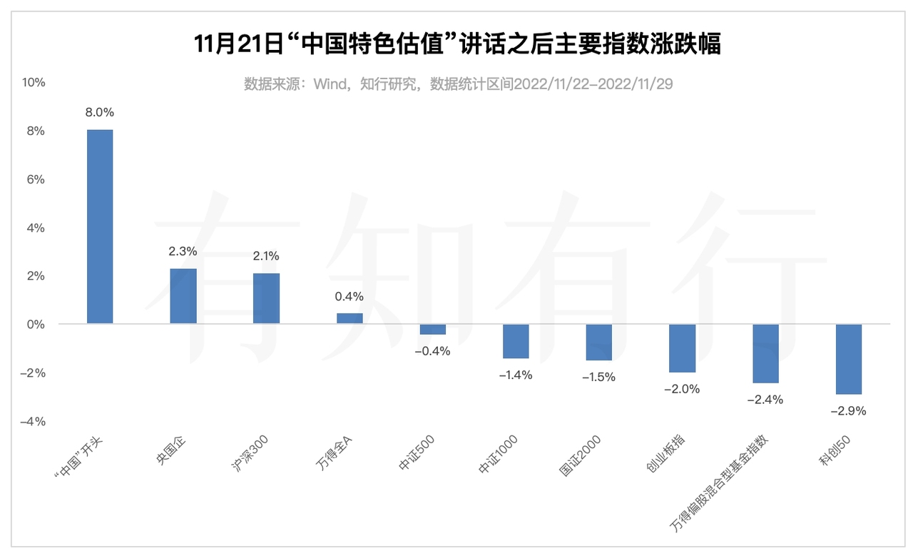 起因是 11 月 21 日,证监会主席易会满在金融街论坛年会上发言,提出「把握好不同类型上市公司的估值逻辑,探索建立具有中国特色的估值体系」,他指出:「估值高低直接体现市场对上市公司的认可程度。上市公司尤其是国有上市公司,一方面要『练好内功』,加强专业化战略性整合,提升核心竞争力;另一方面,要进一步强化公众公司意识,主动加强投资者关系管理,让市场更好地认识企业内在价值。」这种表达被分析人士认为,A股市场上长期被低估的国企板块或迎来价值重估的机遇。