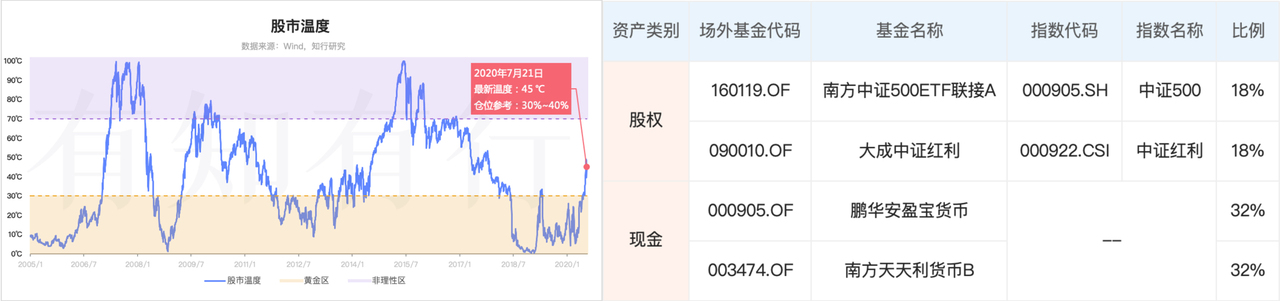 黑板报策略开始于 2020 年 7 月 21 日,那个时候我们只是在黑板报专栏里公布股市温度,以及投资者自己如果买入指数基金,该如何分配品种和比例。那个时候甚至还没有黑板报策略的名字和产品页面,一切都很原始和粗糙。