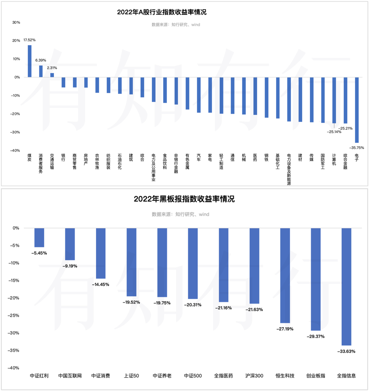 2022 年资本市场的表现,我们在 这周的黑板报专栏文章 里已经回顾过了。总之,对于股票市场来说,黑板报策略关注的不论是A股和中概股,都出现了较大程度的回调。大家既然都是老朋友了,自然对今年股市的表现都亲自经历了,就不再详细介绍市场去年是如何一步一步走过来的。