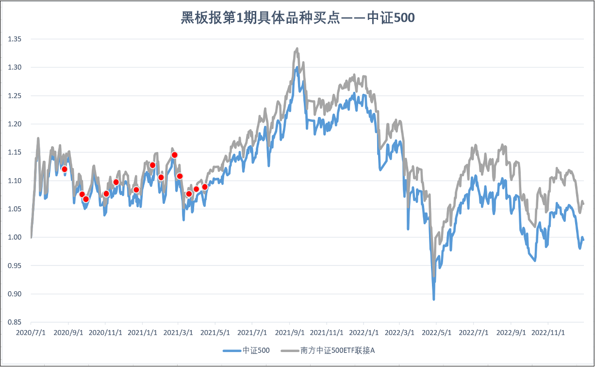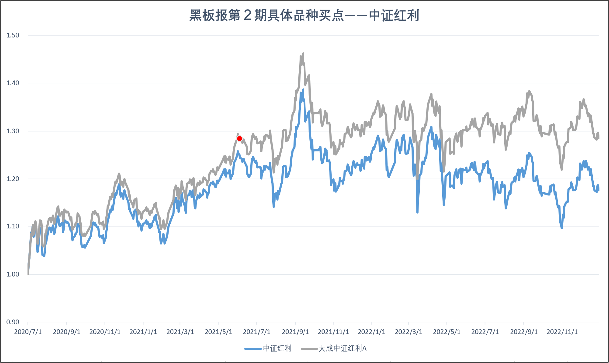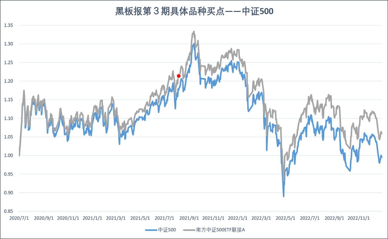 这意味着,如果在 2021 年 6 月初新买入一笔长期投资,按照黑板报策略的逻辑,当时能配置的品种只有中证500和中证红利,黑板报第 1 期已经不适合新钱买入了,于是开启了第 2 期,在开始的同时,暂停了第 1 期的新钱买入。