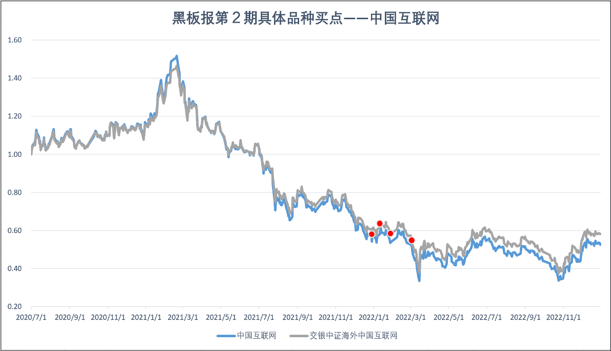 从 2022 年来看,黑板报第 1 期在股市两次探底中密集发车,将仓位逐步加到了 78% 左右。正是这种操作,降低了波动。同时,随着市场下跌,越来越多具有高性价比的品种纳入了买入范围:中国互联网、医药、恒生科技、沪深300、创业板指这些都是 2022 年主要买入的品种,也让黑板报策略整体的持仓更为分散更为均衡。具体品种的情况,可以看后面的每一期黑板报的复盘。