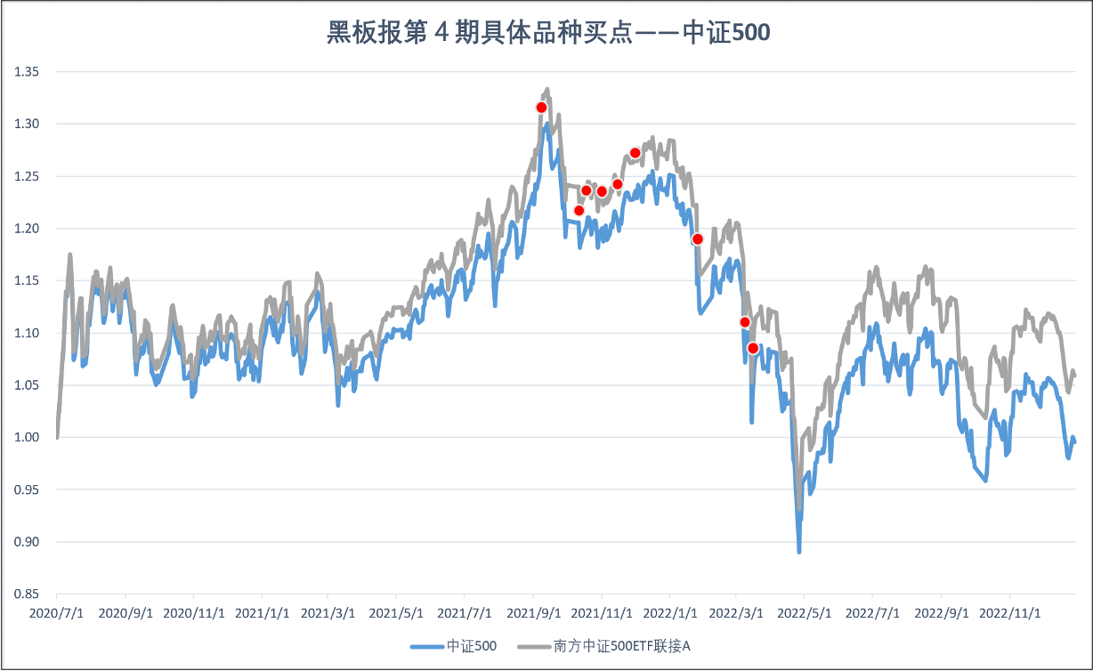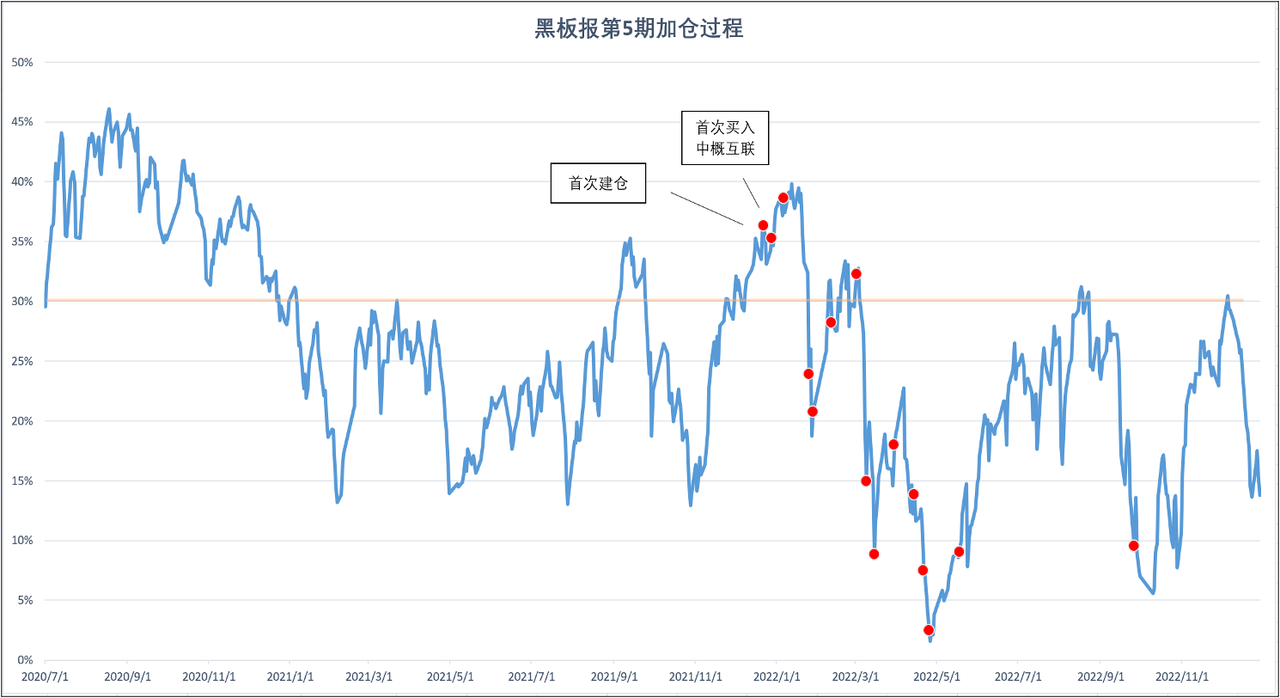 对于黑板报第 5 期来说,它是唯一一个建立在 2021 年年底,只经历、且完整经历 2022 年市场变化的一期产品,大家可以看它的加仓过程和每个品种的买点情况,来看它是如何应对这种快速下跌、快速反弹、又快速下跌的市场的。