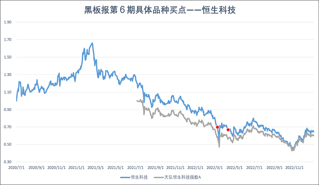 黑板报第 6 期建立于 2022 年 3 月 8 日,跟之前第 4、5 期因为全市场温度提升需要降低股票仓位才开启新一期不一样的是,黑板报第 6 期开启时,全市场温度并不高。之所以要开启第 6 期,是因为第 5 期里中国互联网跟踪的基金暂停申购了,因此需要用恒生科技基金进行替换。