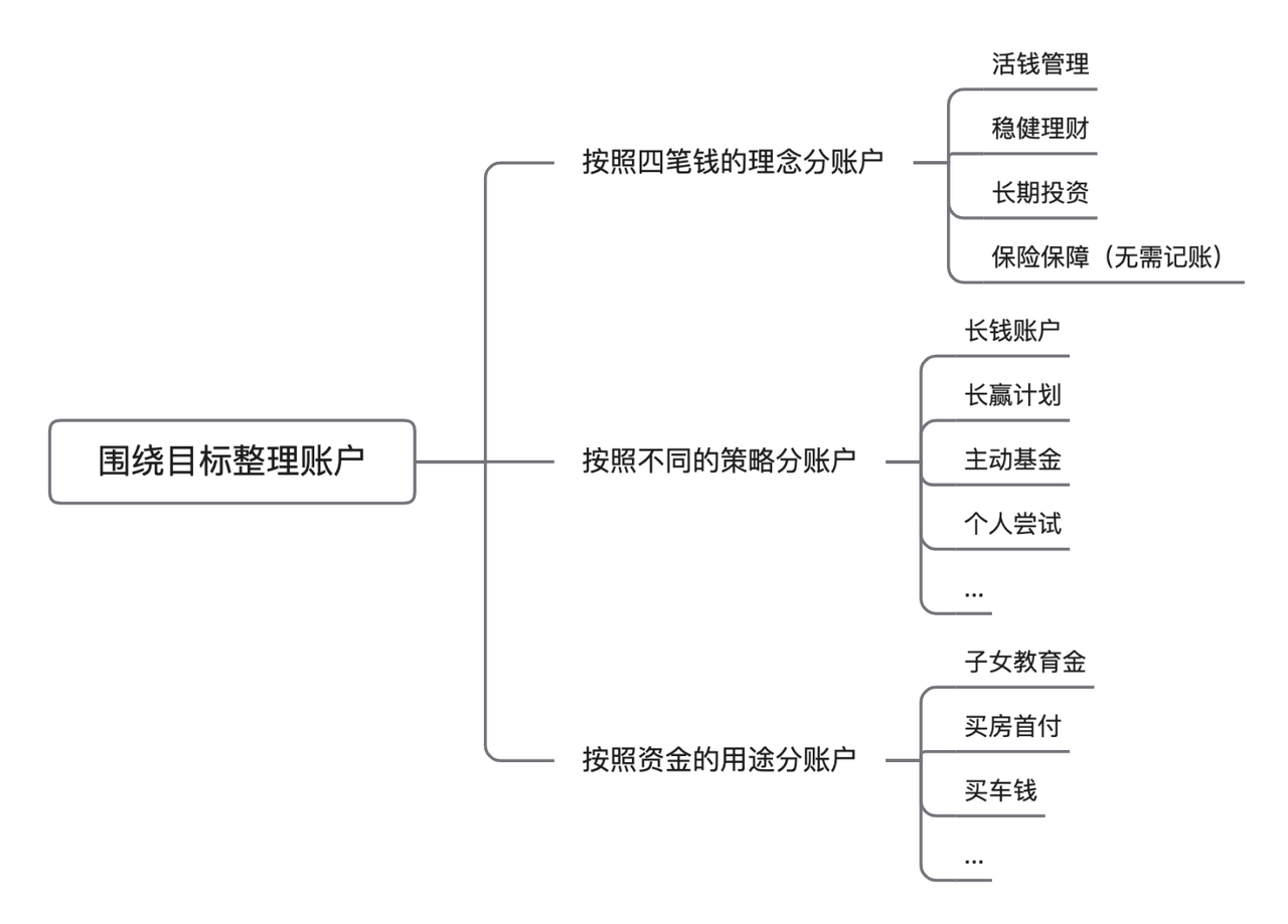 梳理资产的最重要的一步就是规划,建议你围绕着目标来规划账户。