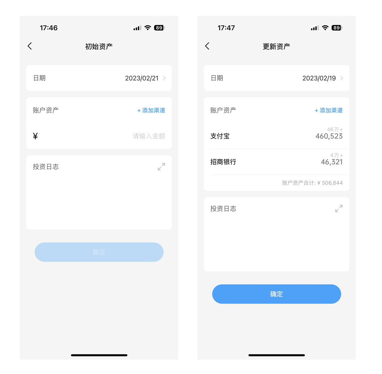 知道转入转出是怎么回事后,你会发现,实际投资中转入转出的情况挺少的。所以日常来说,一个很重要的事情是定期更新资产。