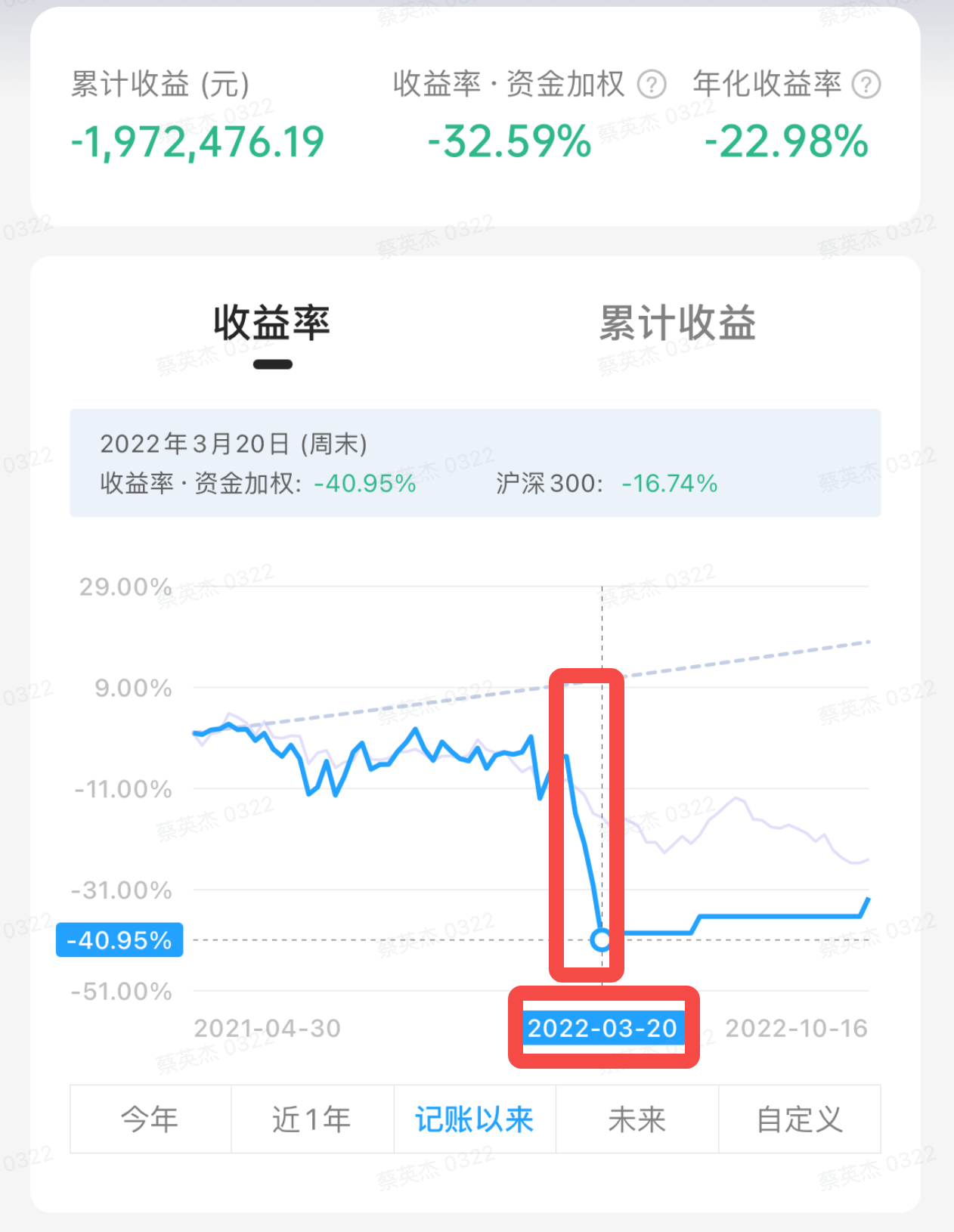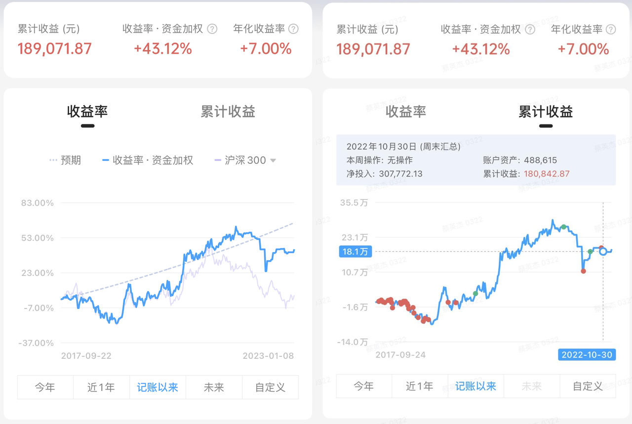 如果哪天你发现收益率图突然有增高或悬崖式下跌,那大概率是你的记录出了问题。可以点击图表上的突变位置查询日期,再到更新记录中查看这两天附近数据是不是记错了,改正过来就可以。
