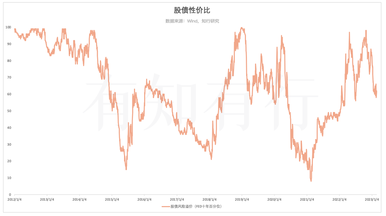 就目前而言,最新的 FED 十年百分位数据是 60%,可以认为是 60°,这意味着股票相对于债券来说,性价比还是很高的。从定义来看,股债风险溢价和全市场温度是反向关系,股债风险溢价越高说明股票的性价比越高,而全市场温度越低说明股票的性价比越高。