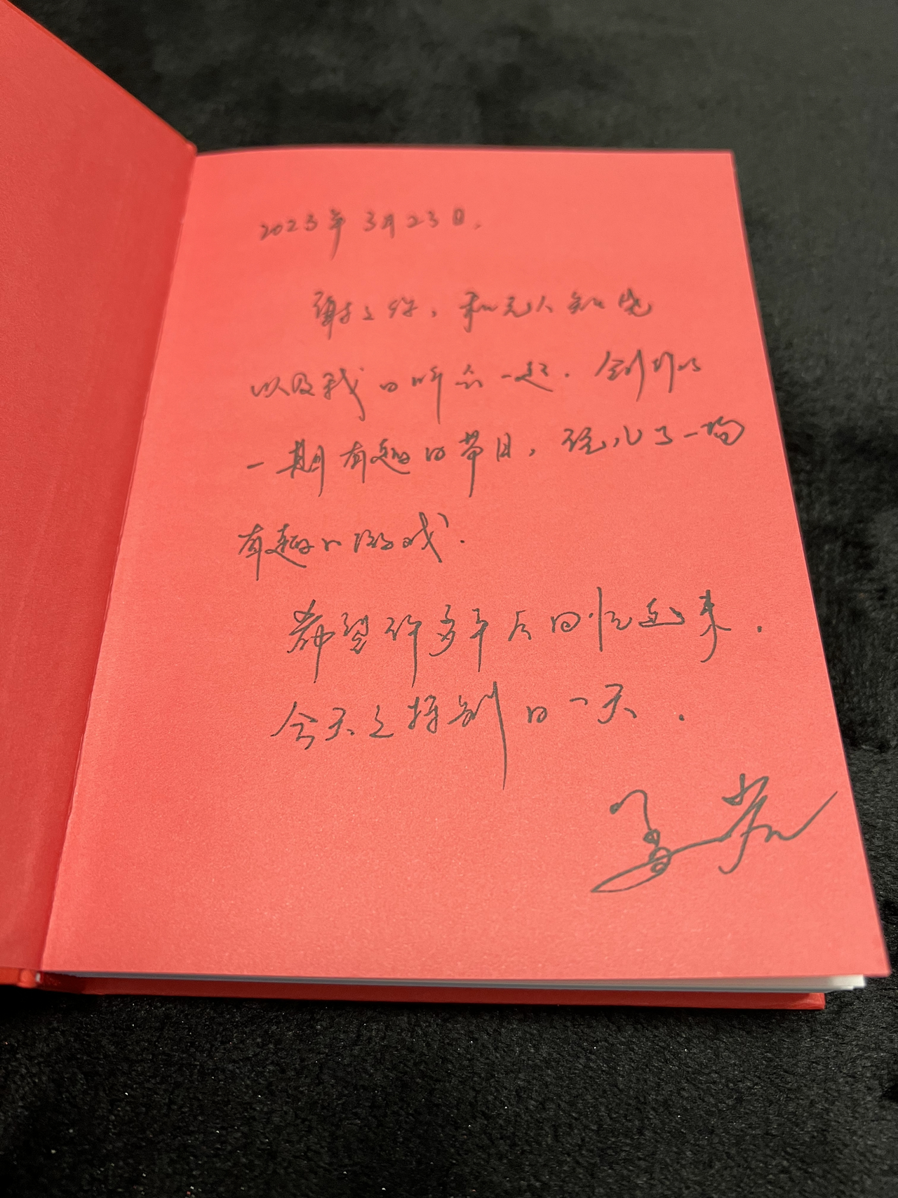 非常荣幸,听完无人知晓一二期,印象最深刻的就是那句『让万物穿过自己』。非常幸运的是,我收到的就是签着这一句话的,第九条留言第二张图。收到的一刻,几乎就是我人生最欣喜的时刻之一。祝孟岩、有知有行越来越好,火遍中国。也愿自己和家人能在知行陪伴中积累财富,收获幸福。