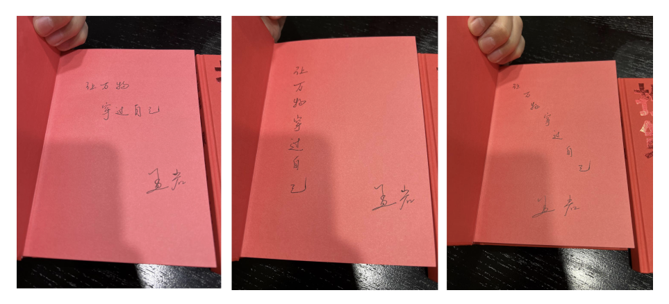 边听着这一期播客,再次确认一下,我收到的这本书,确定是孟老师的亲笔签名吗? 一一让万物穿过自己。 一一一一一一一一一一孟岩